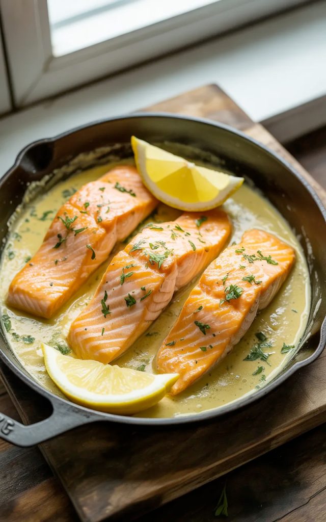 I had salmon fillets, half a lemon, some heavy cream, and butter. What came out of that pan was nothing short of a revelation. Rich, silky, bright from the lemon, with salmon so tender it practically melted. My family didn’t say a word for the first five minutes — and trust me, that’s the highest compliment in my house.