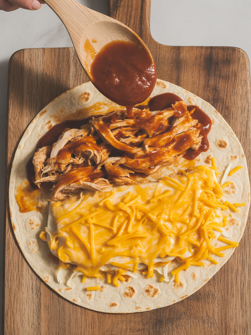 Prep Your Workspace: Lay out your tortillas, shredded cheese, and BBQ chicken filling so everything is within easy reach. Have your butter ready and a spatula nearby. This assembly-line approach makes the process go much faster.