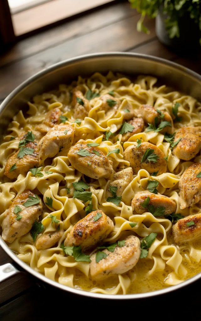 One-Pan Creamy Garlic Butter Chicken with Egg Noodles (30 Minutes, One Pan, Zero Complaints)