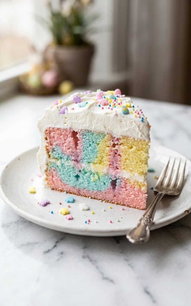 Soft pastel layers, fluffy whipped cream, and festive sprinkles — the Easter dessert that steals the whole show