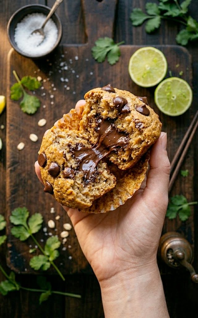 I made these on a whim one Saturday morning when I wanted something that felt indulgent but would not weigh me down. One bite in, I knew this was going on the permanent rotation. They taste like a cross between a banana bread and a peanut butter cookie — and that melty chocolate center? That is the part nobody sees coming.