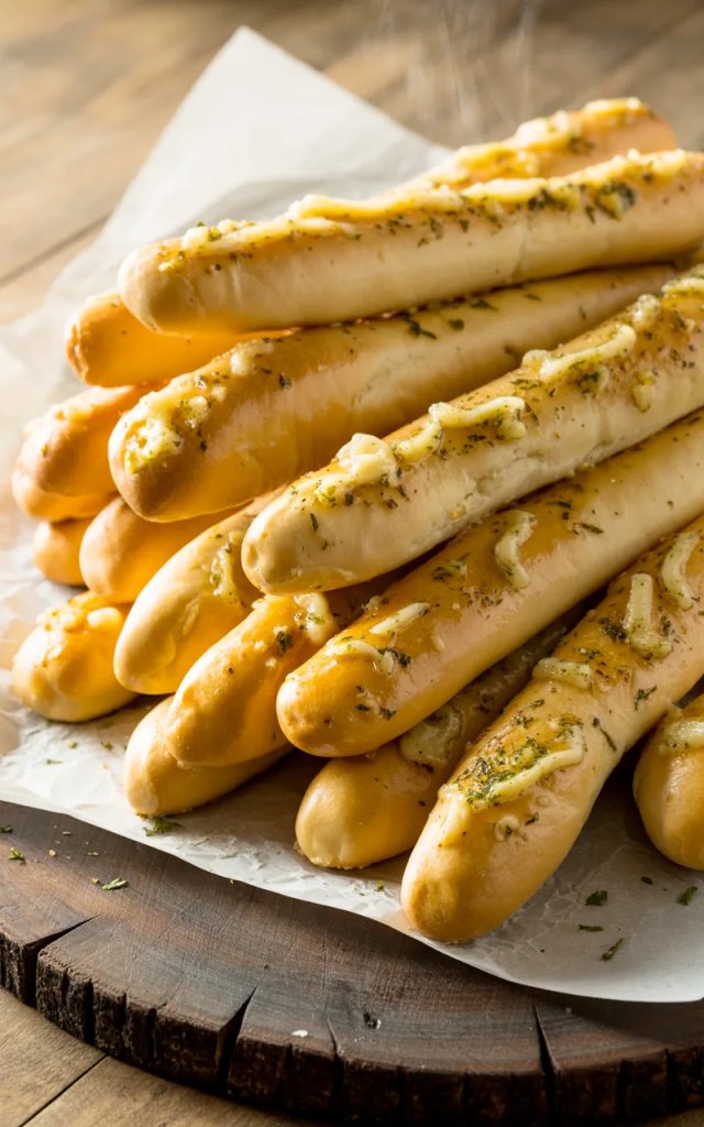 Reheat breadsticks in the oven at 350°F for 5–7 minutes until warmed through and slightly crisped on the outside. An air fryer at 350°F for 3–4 minutes is even better — it revives the exterior texture while keeping the inside soft. Before reheating brush with a little extra melted butter to refresh the garlic butter coating. The microwave works in a pinch but wrapping in a slightly damp paper towel prevents them from drying out.