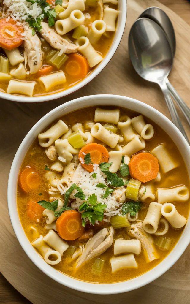 Loaded with Good Stuff: Tender chunks of chicken, colorful vegetables (carrots, celery, onions), and plenty of pasta make this soup hearty and satisfying. It’s not just broth with a few sad vegetables floating around—this is a proper meal.