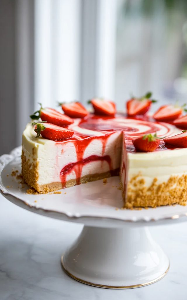 Strawberry Swirl Cheesecake Recipe — Creamy, Beautiful & Surprisingly Easy to Make