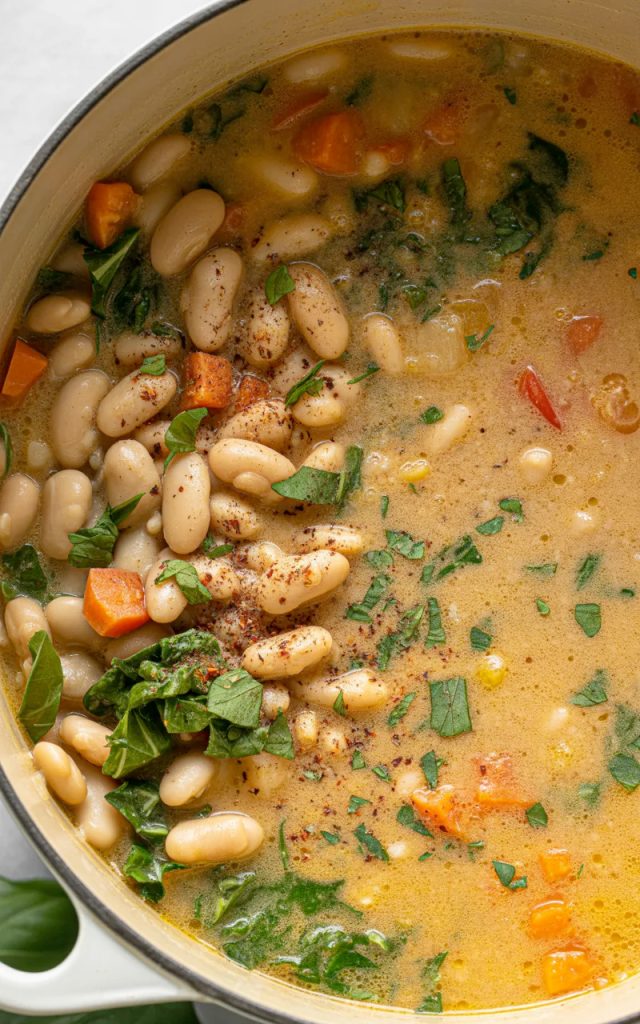 Keywords: Tuscan white bean soup, vegan white bean soup, creamy vegan soup, Italian white bean soup, one pot vegan soup, plant based soup, healthy vegan dinner, easy vegan recipe